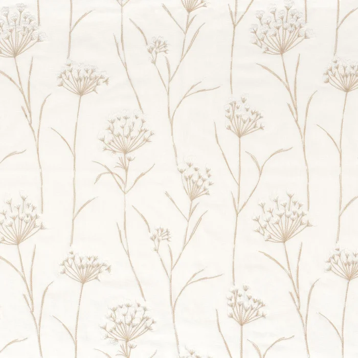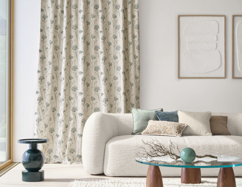* Reine est une broderie florale raffinée, légère et fluide, au motif de fleurs stylisées, réalisée sur un tissu très fin à l’apparence du lin. Le travail méticuleux combine trois fils de coton en dégradés doux, créant un motif subtil en relief qui semble presque suspendu. Ce dessin élégant se décline en quatre harmonies de couleurs, offrant des atmosphères poétiques et lumineuses à vos rideaux.