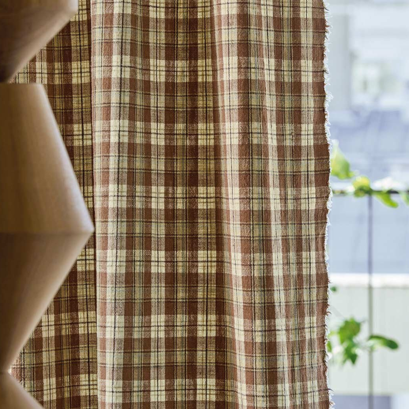 * Sillage est un motif réalisé à partir de la rayure '' Vagabond '' sur lequel les fils de trame se structurent pour former de petits carreaux. Destiné à la confection de rideaux, ce tissu intemporel est proposé en trois coloris : terracotta, bleu galet et ocre.