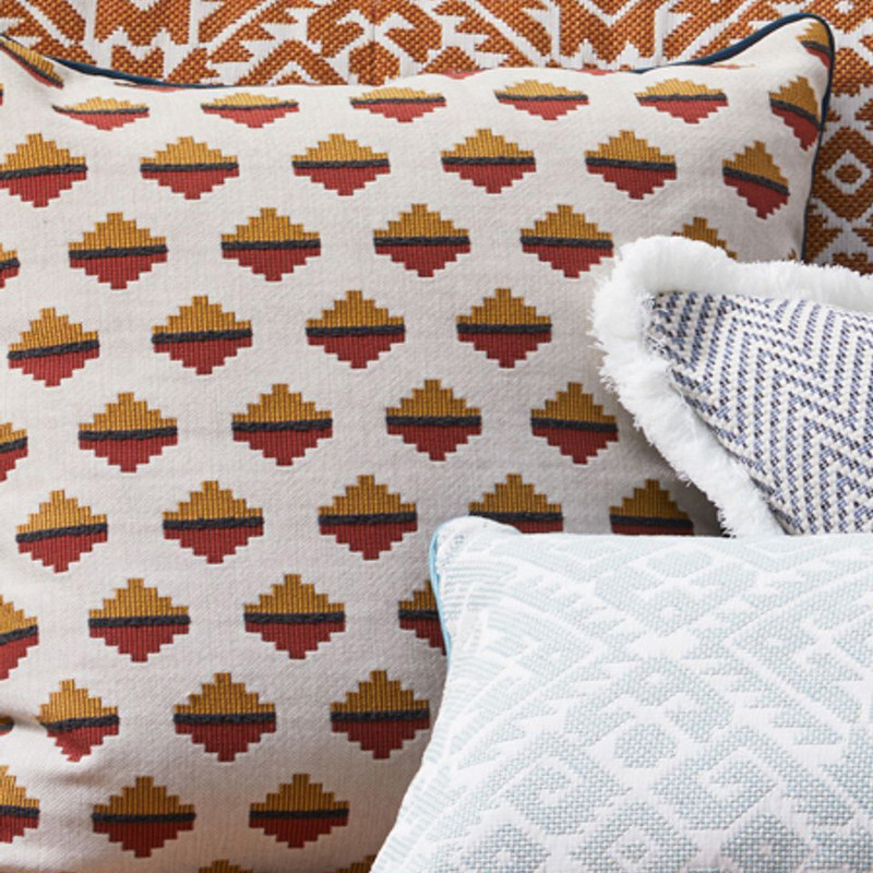 * Mazan est un tissu outdoor au motifs de losanges rappelant ceux des tapis. Ils sont répartis régulièrement sur ce tissu à la trame dense. Un fil de chenille, utilisé pour les accents de couleur, apporte profondeur et texture à ce tissu élégant et moderne, idéal pour l'intérieur comme pour l'extérieur.