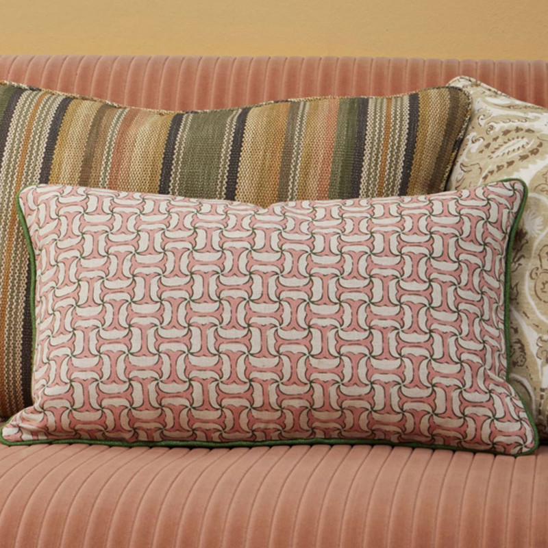 * Pavage est un motif à petite échelle, composé de formes géométriques imbriquées rappelant les pavés, et rehaussé d'un contour délicat. Une excellente façon d'apporter une touche de couleur originale à votre décoration. Imprimé sur un tissu en lin mélangé de qualité, il est disponible en quatre coloris.