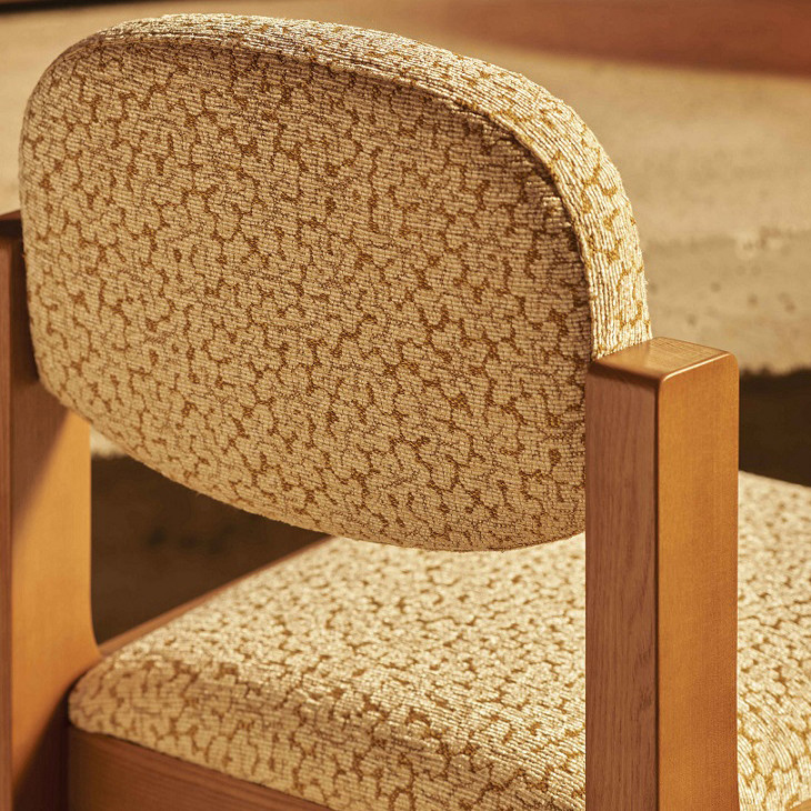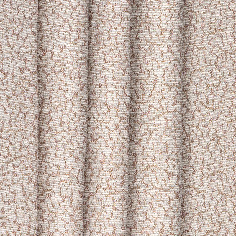 * Coraux puise son inspiration dans les formes organiques des coquillages et des coraux sous-marins. Ses reliefs subtils, comme des fragments de nacre, accrochent la lumière. Ce tissu, bien que non réversible, offre un envers esthétique qui peut s'intégrer harmonieusement à vos réalisations rideaux ou sièges.