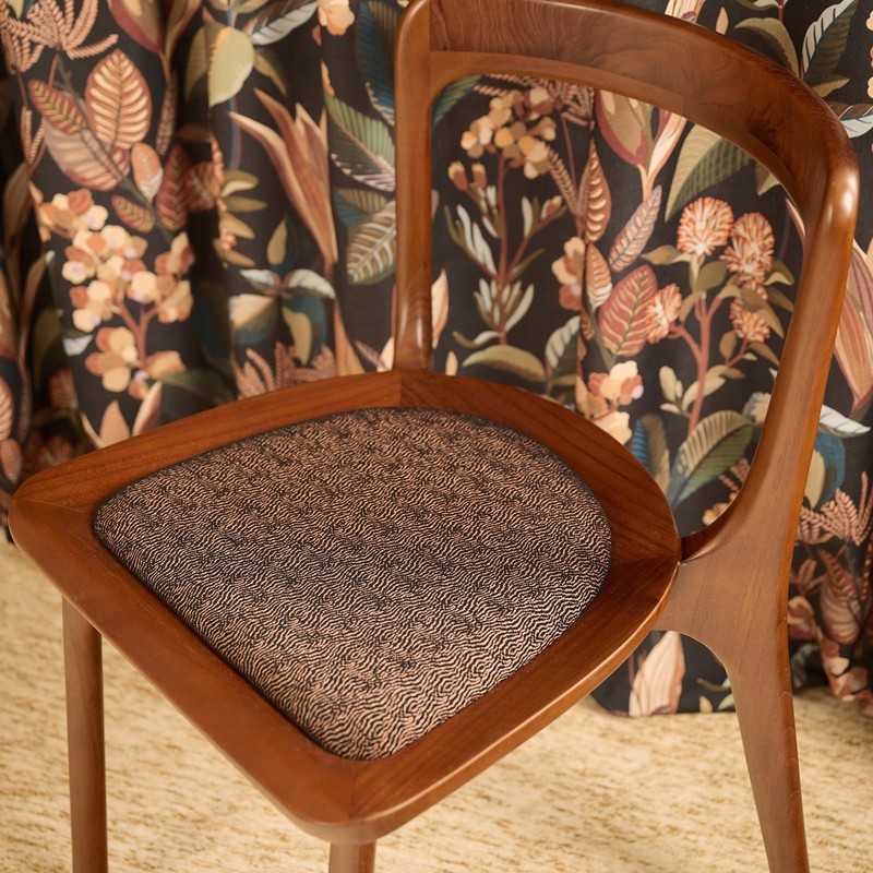* Sukkari est un jacquard chenillé qui séduit par sa texture riche et sa matière exceptionnellement souple et douce. Son petit motif discret laisse place à de multiples interprétations : certains y verront le motif d'une date, d'autres le pelage d'un fauve ou encore l'écorce d'un arbre. Baptisé Sukkari, en référence à une variété de dattes reconnue pour sa douceur et sa finesse, ce tissu caméléon reflète parfaitement ces qualités. Idéal aussi bien pour les rideaux que pour les sièges. Tissu non feu.