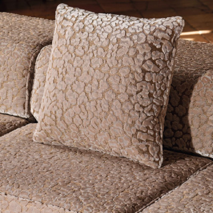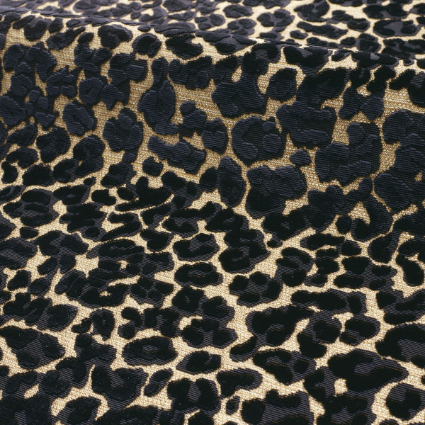 * Eternelle est un luxueux velours épinglé coupé, confectionné sur une machine à métier jacquard, selon trois niveaux de hauteur dans le poil: la base, la boucle et la coupe. Cette stratification lui vaut ce caractère tridimensionnel unique et sa luxueuse sensation visuelle et tactile. Le motif, inspiré de la robe des grands félins, semble danser sur un fond texturé entremêlant avec finesse plusieurs coloris et grosseurs de fils. La boucle, sur le niveau intermédiaire, texturise encore davantage l’étoffe, avec des fils de viscose lançant leurs miroitements hypnotiques. Les six coloris