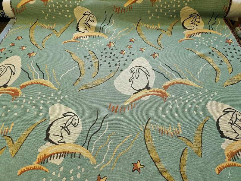 * Galejade est une charmante composition à l’univers poétique, dans l'esprit des tapisseries anciennes, dont le dessin représente de petits lapin, ou garenne prennant la pose dans un paysage imaginaire. Galejade est un tissu lourd et épais, proposé dans 2 coloris aux teintes pastels, pour un usage siège.