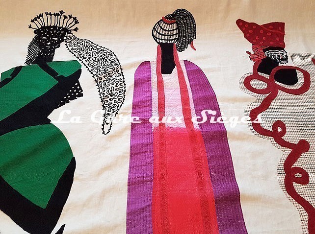 * Beau Monde est une broderie artisanale réalisée sur un fond lin. De magnifiques personnages, en costume colorés sont représentés en taille réelle ( 1,70 m ). Présentés par trois sur deux panneaux faisant chacun 3 mètres de hauteur, ces représentations sont extraitent d’une œuvre de Noëmie Vallerand. Coup de coeur.