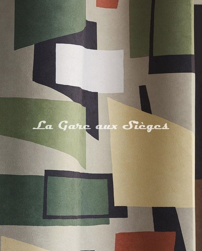 * Boléro est une suédine au toucher particulierement doux, et à la résistance permettant un usage siège. Boléro est imprimé à la main dans deux harmonies de teintes, de formes géométriques colorées qui se superposent.