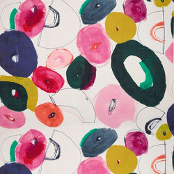 * Tissu imprimé sur lin représentant une œuvre abstraite de ronds et de cercles colorés de l'artiste Heather Chontos.